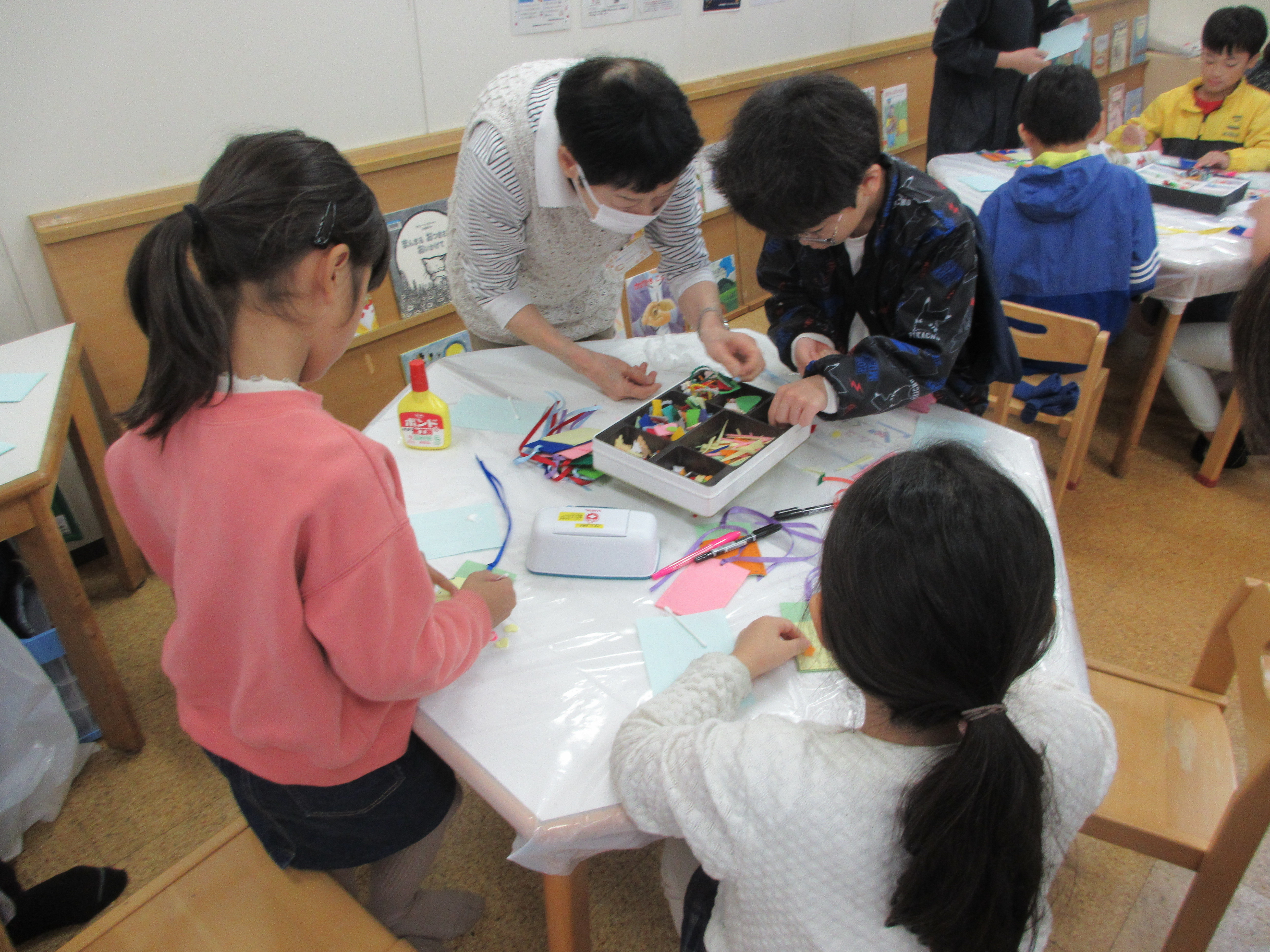手袋人形、絵本の読み聞かせ、ペープサート、模造紙シアターを行いました。