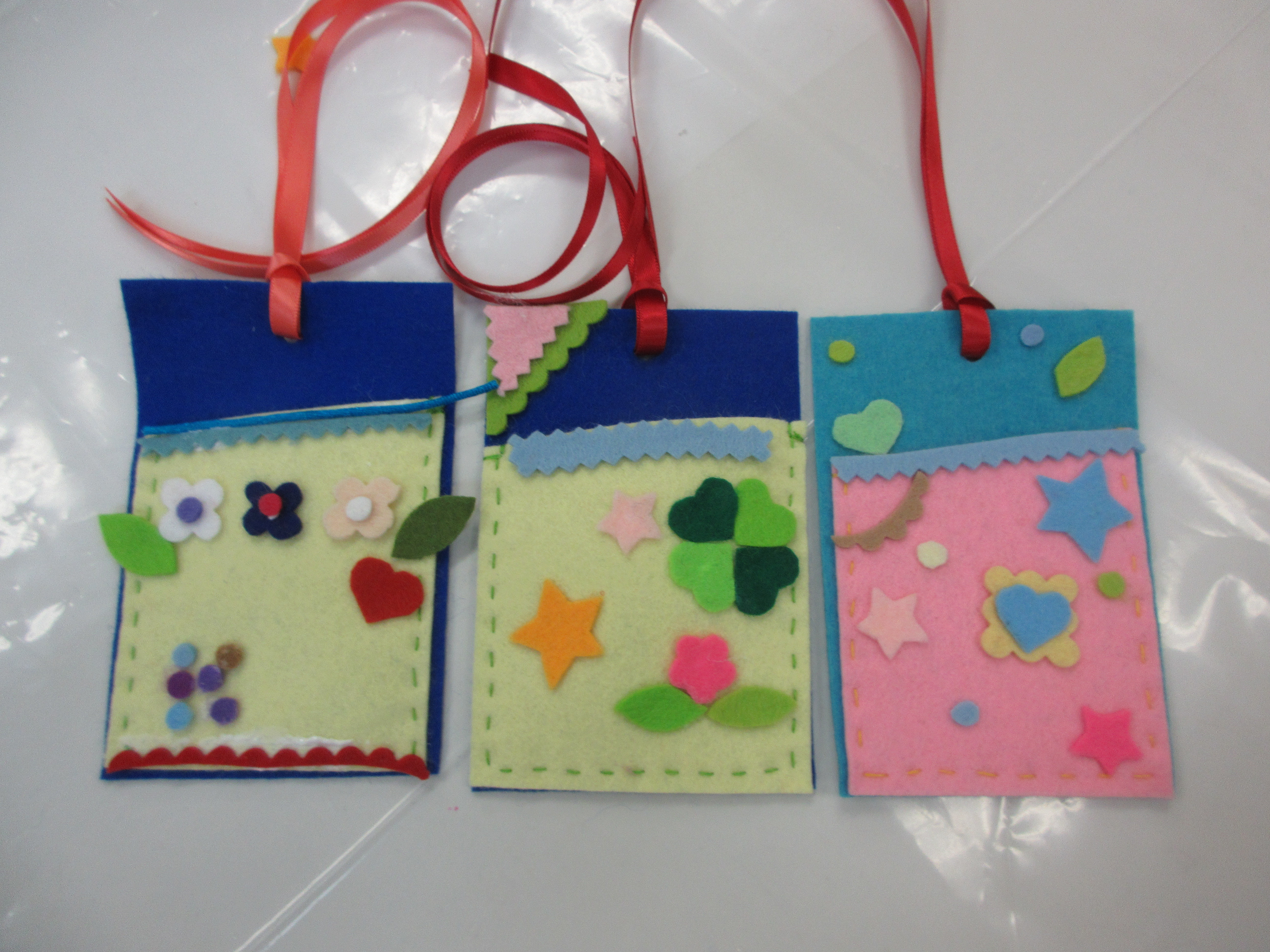 キッズルームでは、布絵本の会ゆりかごさんが作成した布絵本の展示と「布のカードケースづくり」を行いました。