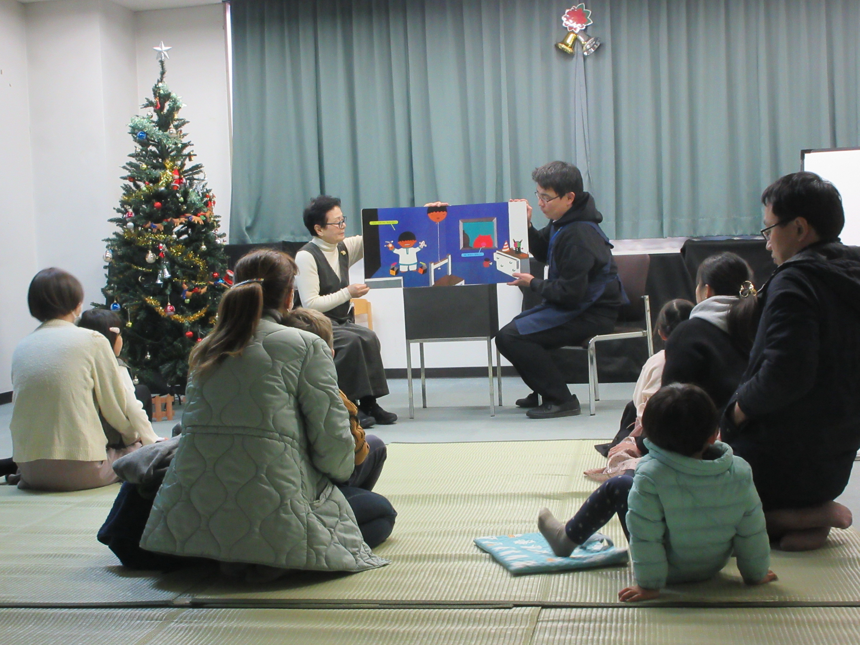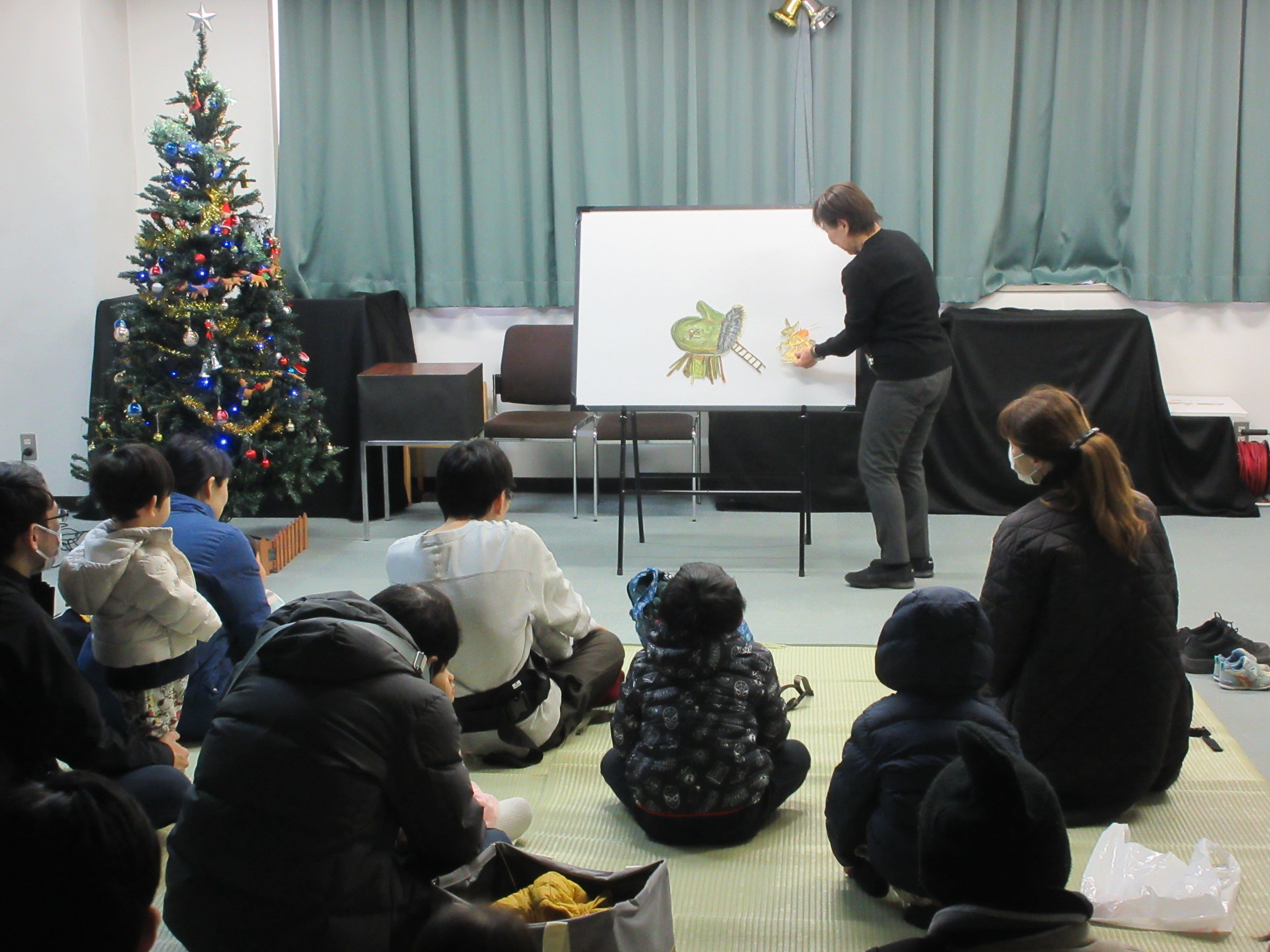 今年も「和光絵本とお話の会」の皆さんによる「クリスマスおはなし会」を開催いたしました。 クリスマスツリーと飾りつけをしたお部屋で行うおはなし会は、いつもと雰囲気が違う特別なおはなし会となりました。この日は、図書館本館の館長と職員も絵本の読み聞かせを担当しました! おはなし会の最後に、ボランティアの皆さま手作りのプレゼントをもらい、子どもたちもうれしそうに受け取っていました。 新年の土曜のおはなし会は、1月10日(土)から始まりますので、ぜひご参加ください。