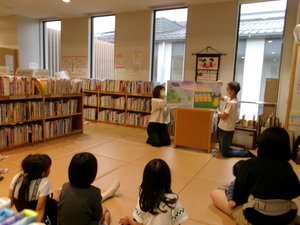 下新倉分館では、毎月第3水曜日に小学生向けの「ひまわりおはなし会」を行っています。