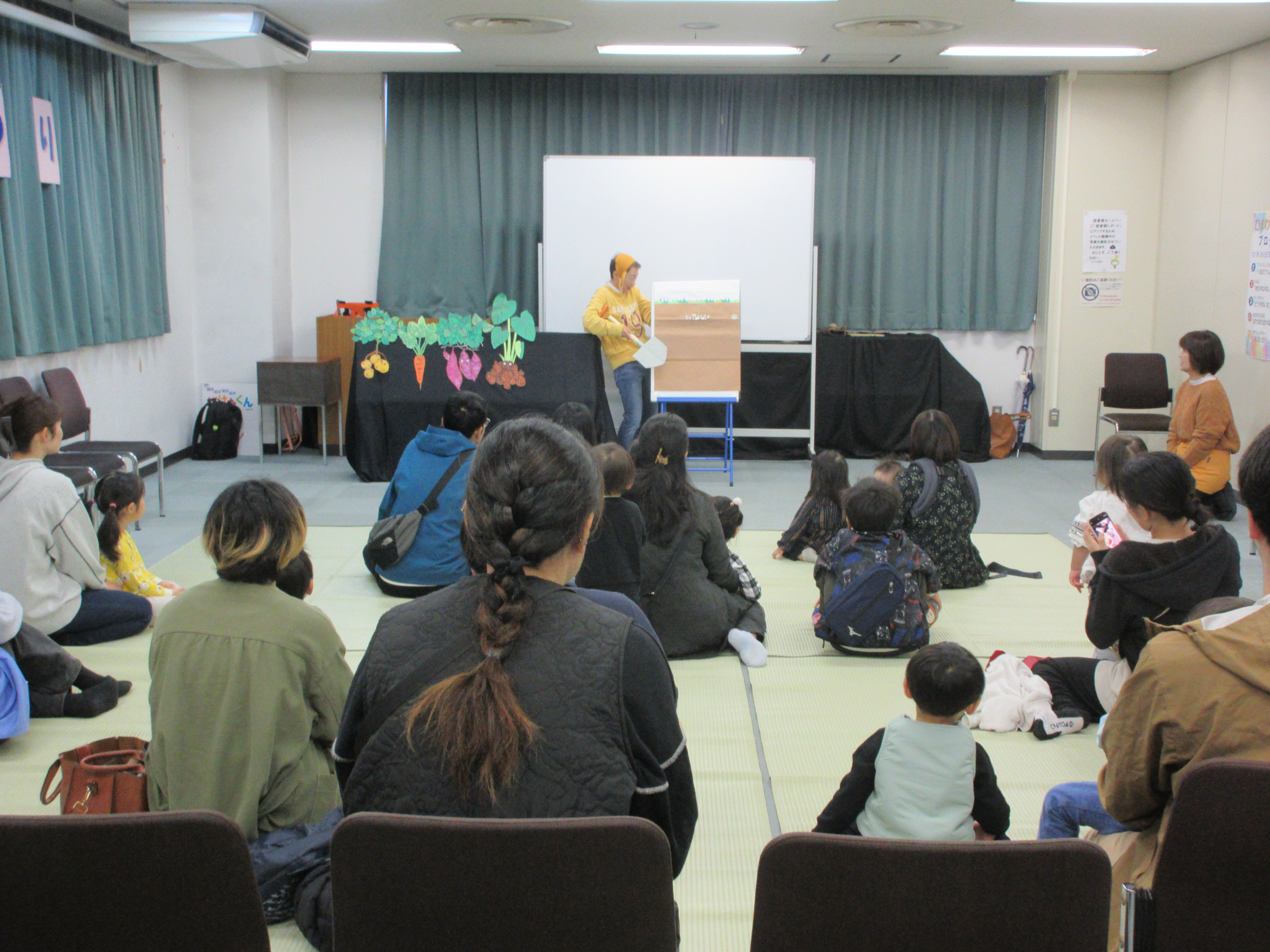 会議室では、普段から図書館で読み聞かせ等の活動をされているボランティア団体さんが、この日のために練習した特別版を披露してくださり、参加した親子はとても楽しそうでした。