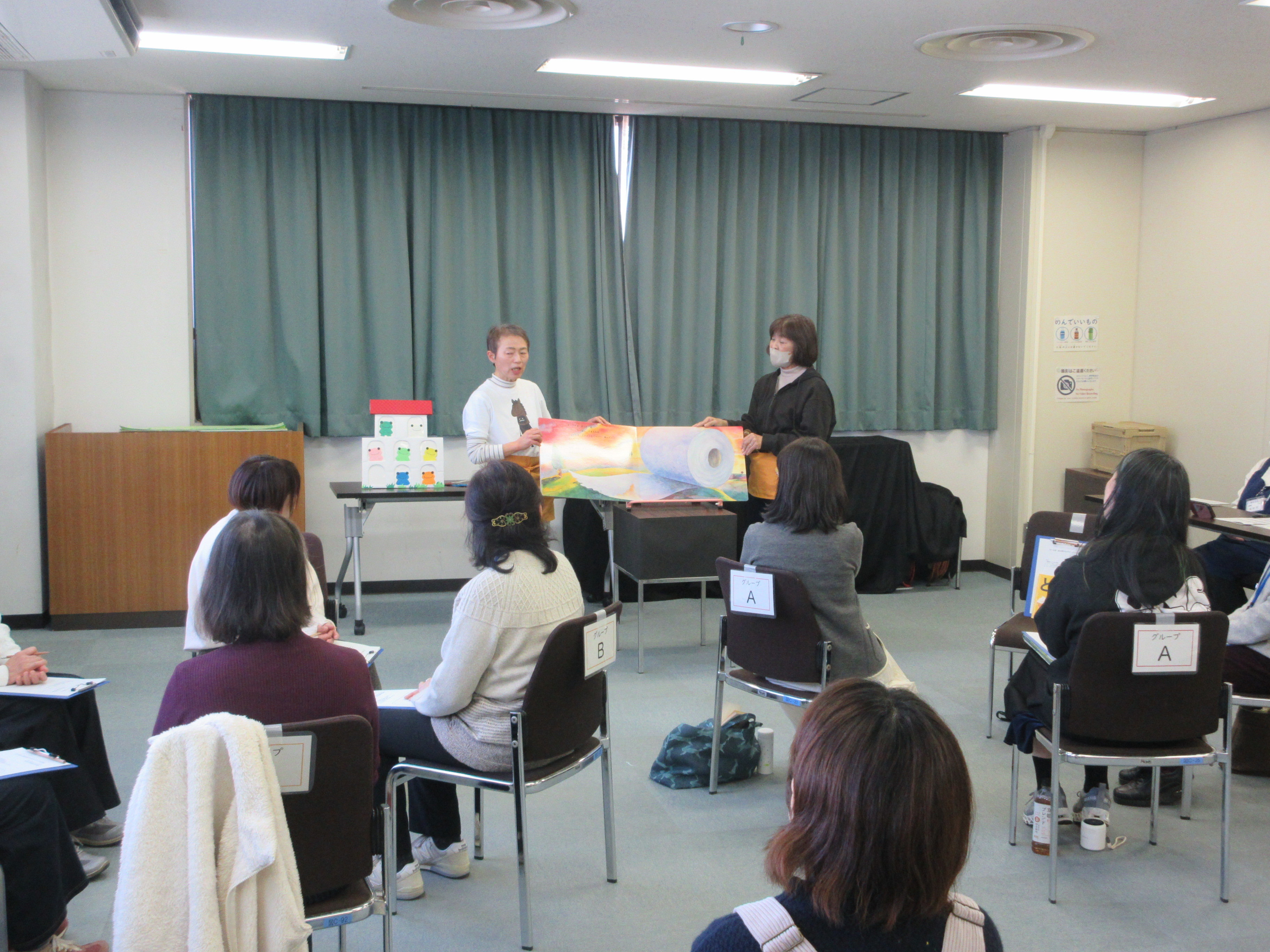 休憩をはさんで後半は、グループごとに読み聞かせに関する意見交換を行い、その内容をグループごとに発表していただきました。